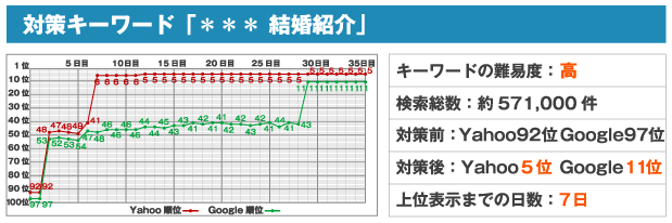 しかも、検索順位の改善に伴い、男女共に大幅な会員数増加を達成することができたとのことで大変喜ばれておりました。